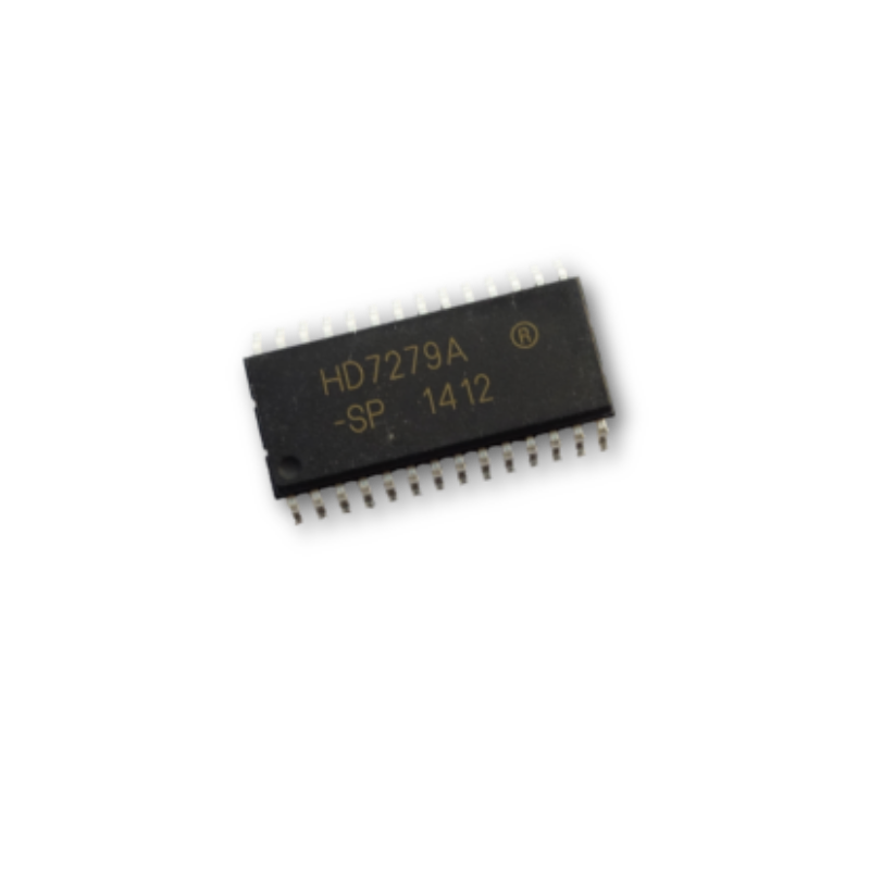 HD7279芯片采用SOIC28封装,可驱动8位数码管显示(或者64个独立LED)。HD7279同时提供64键键盘接口。